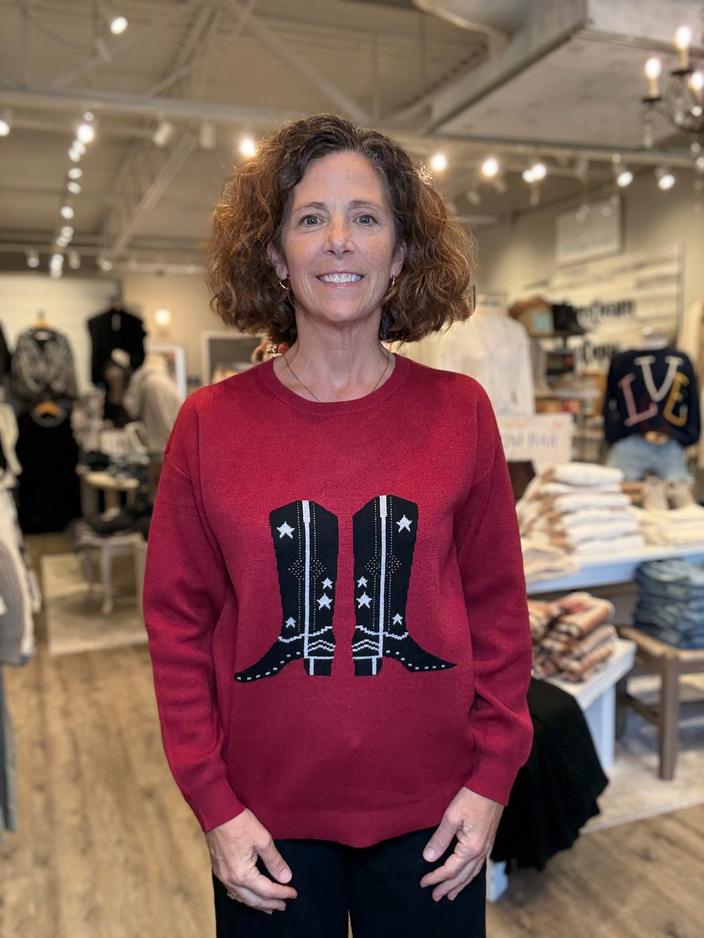 This bold red sweater with cowboy boots is giving us ALL the western vibes — just in time for fall! 🍂✨