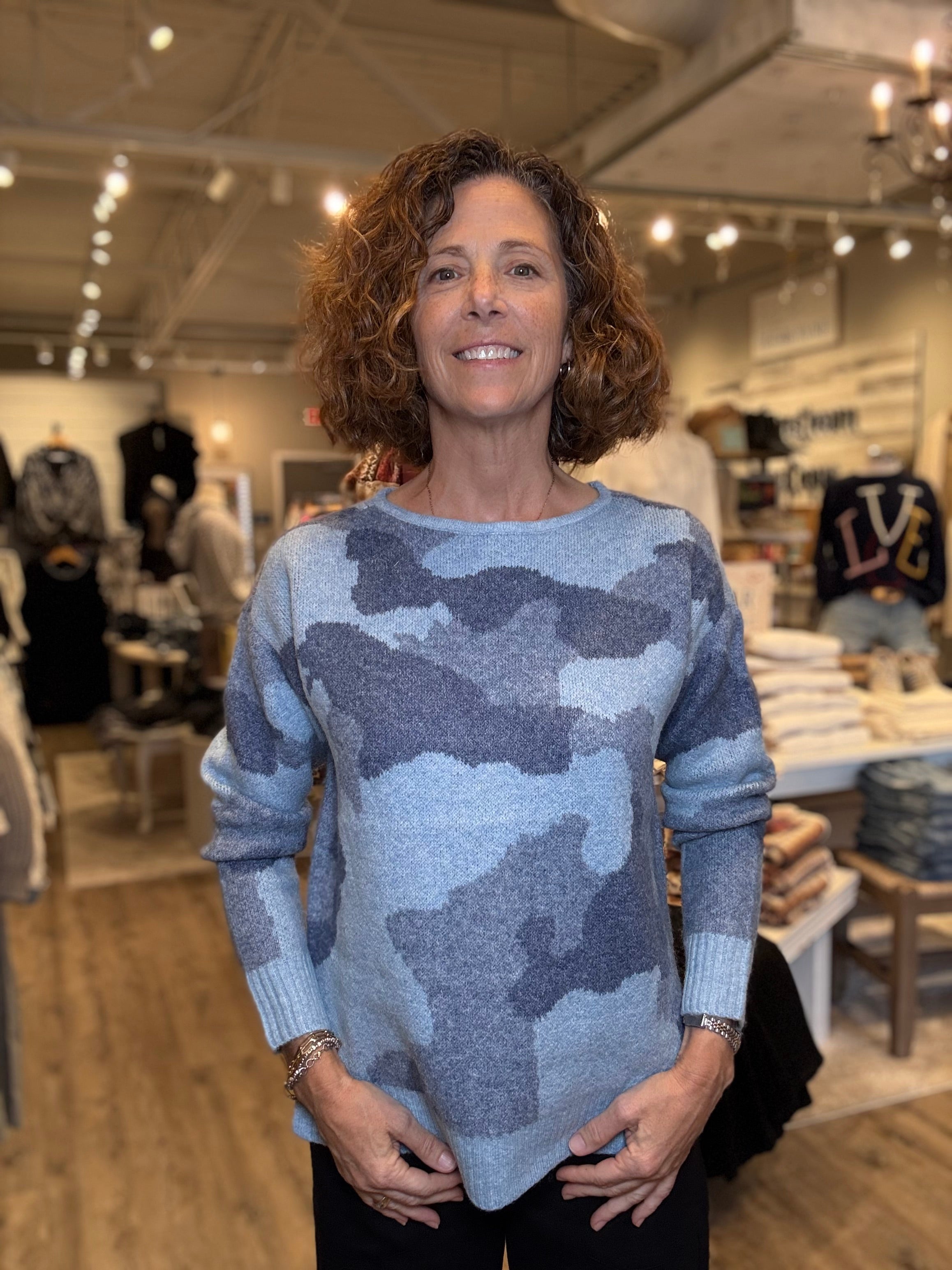 Whether you love the soft grey neutral tones or the cool blue camo, these sweaters are cozy, chic, and perfect for layering.