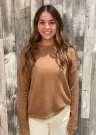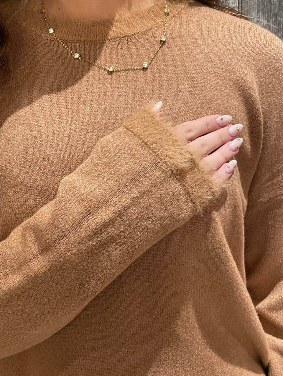 Fuzzy Trim Sweater – Camel & Black