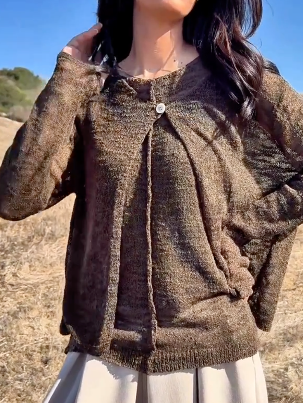 Lightweight, effortless, and timeless — this soft brown knit cardigan is a must-have layering piece for the season. Designed with a relaxed silhouette and a single button closure, it adds just the right amount of texture and warmth to any outfit. Perfect for transitioning between seasons or completing your look with understated elegance.