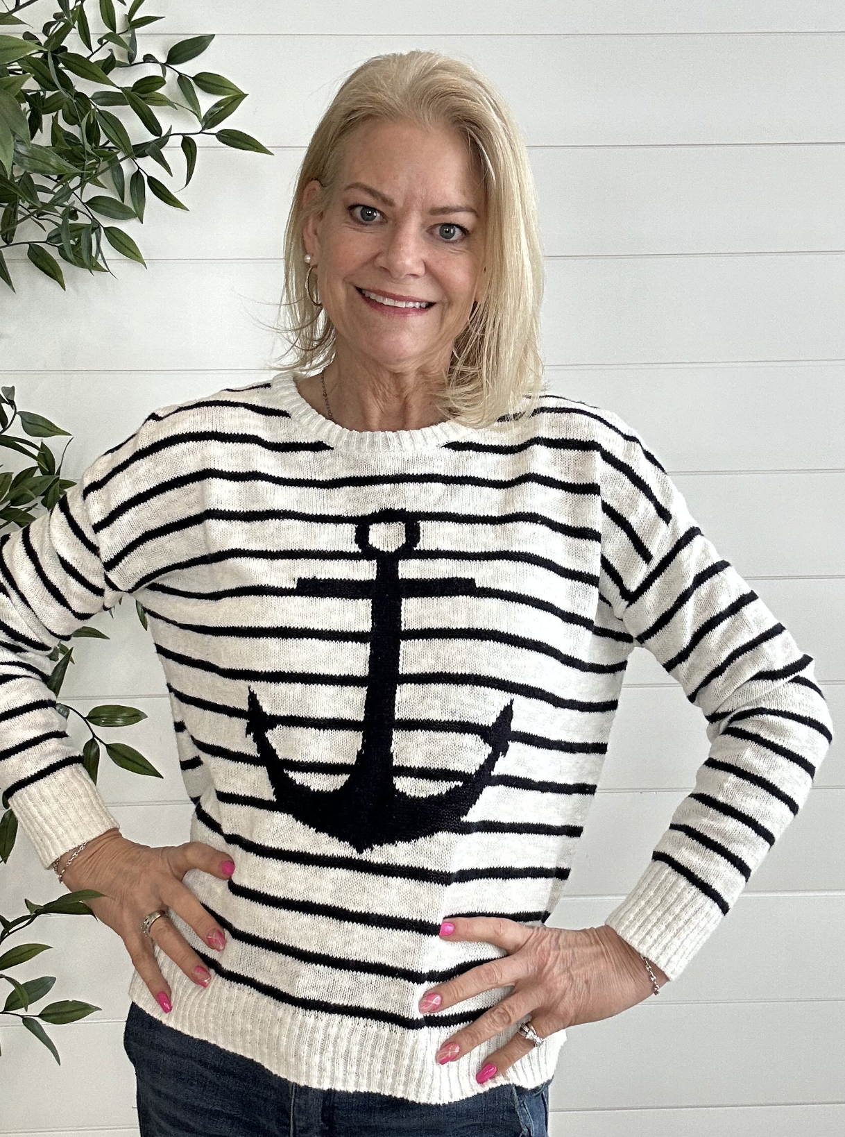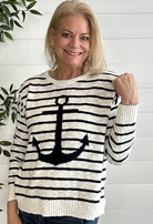 The Crisp Spring Stripe Sweater with Large Front Anchor is the perfect blend of classic pattern and standout style. Designed with clean, spring-ready stripes, this lightweight sweater feels bright and polished while remaining easy to wear. The large front anchor adds a bold, nautical-inspired touch that makes a statement without overwhelming the look. Soft and breathable with a flattering silhouette, it’s an effortless piece for transitional days and casual outings alike.