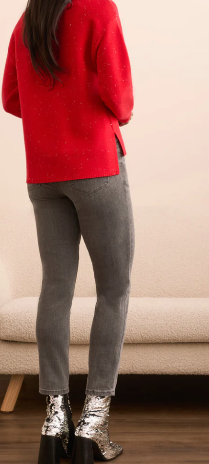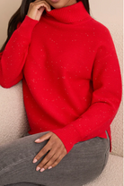 Turn heads this season in this bold and beautiful red speckled turtleneck sweater. With its cozy knit texture and subtle flecks of shimmer throughout, this sweater adds the perfect amount of festive flair without being over the top. The relaxed fit, ribbed cuffs, and slouchy turtleneck make it as comfortable as it is stylish β ideal for holiday gatherings, cozy nights in, or adding a pop of color to your everyday look.