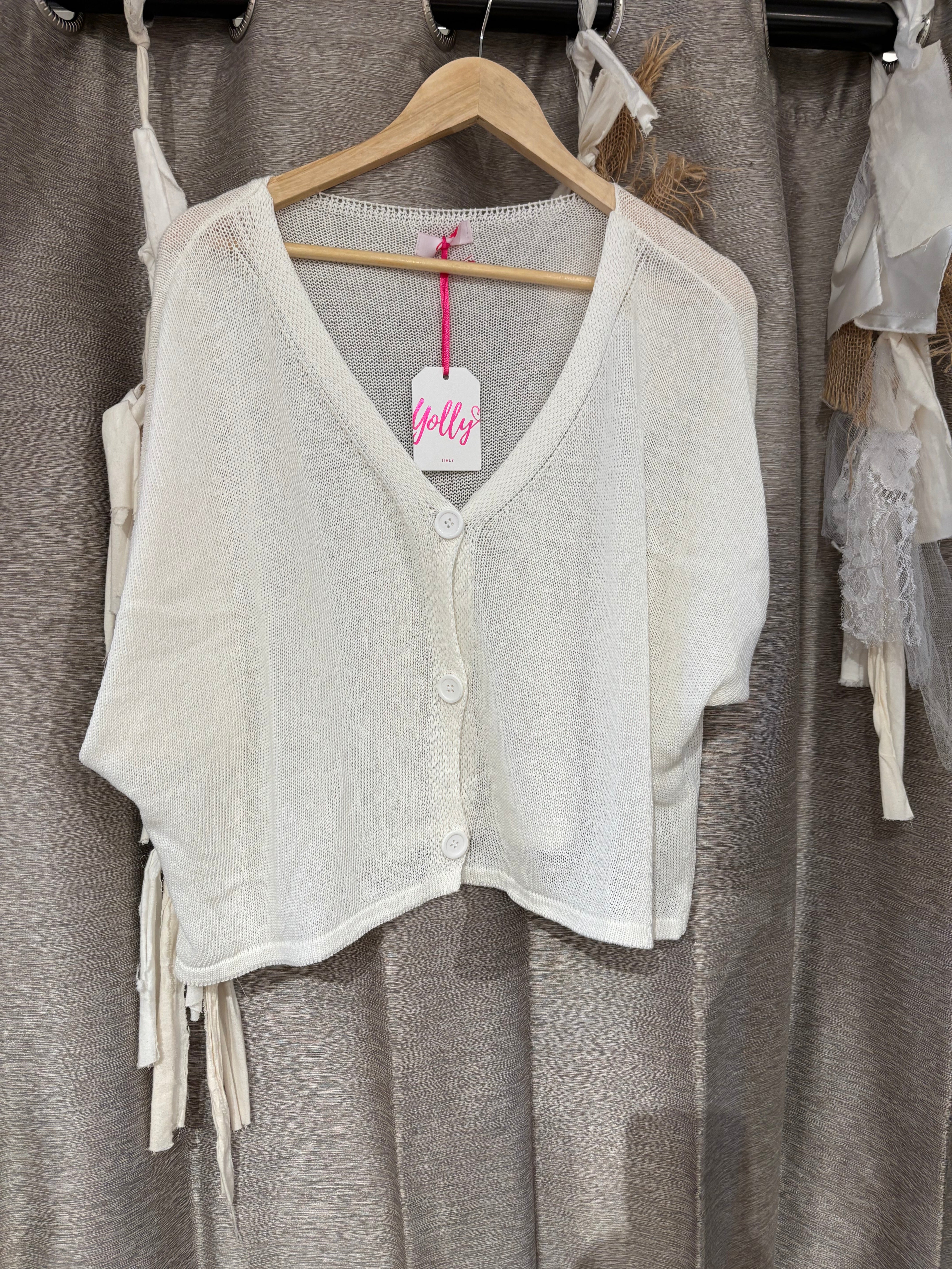 Pointelle Wavy Striped Knit Sweater Top W Button