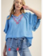 Embroidered Raglan Sleeve Top