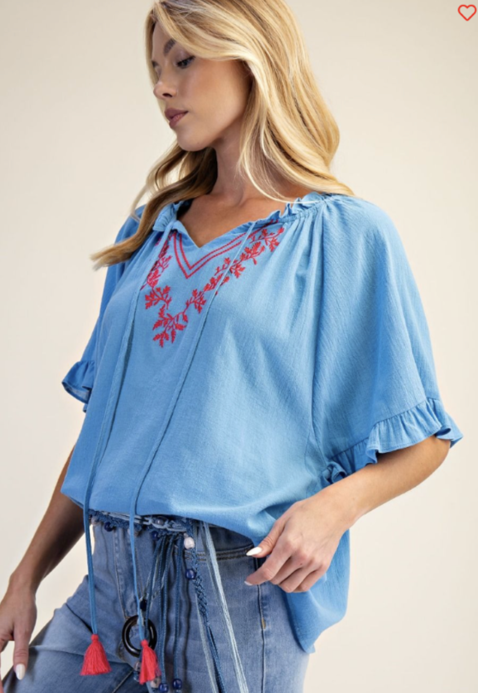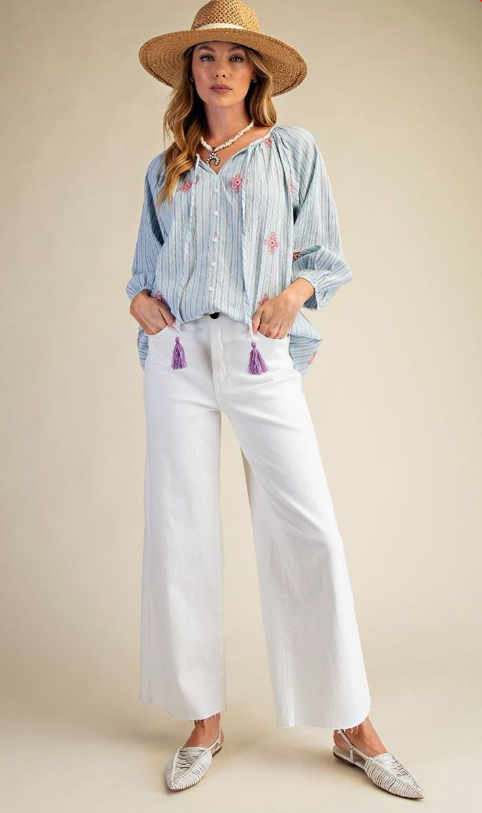 TEXTURED WOVEN EMBROIDERY DETAILING TOP