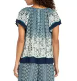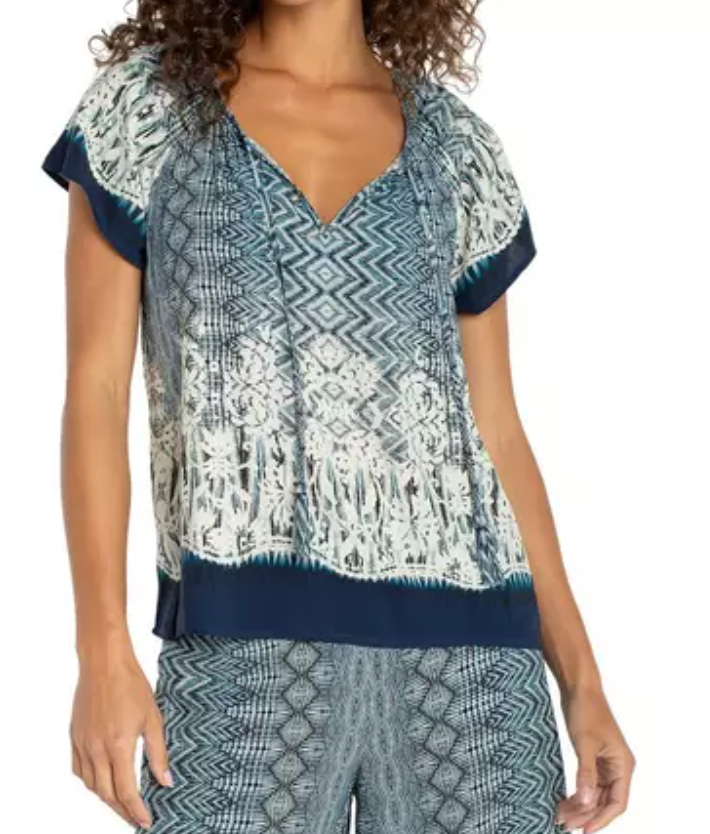 Printed Tie-Front Short Sleeve Top