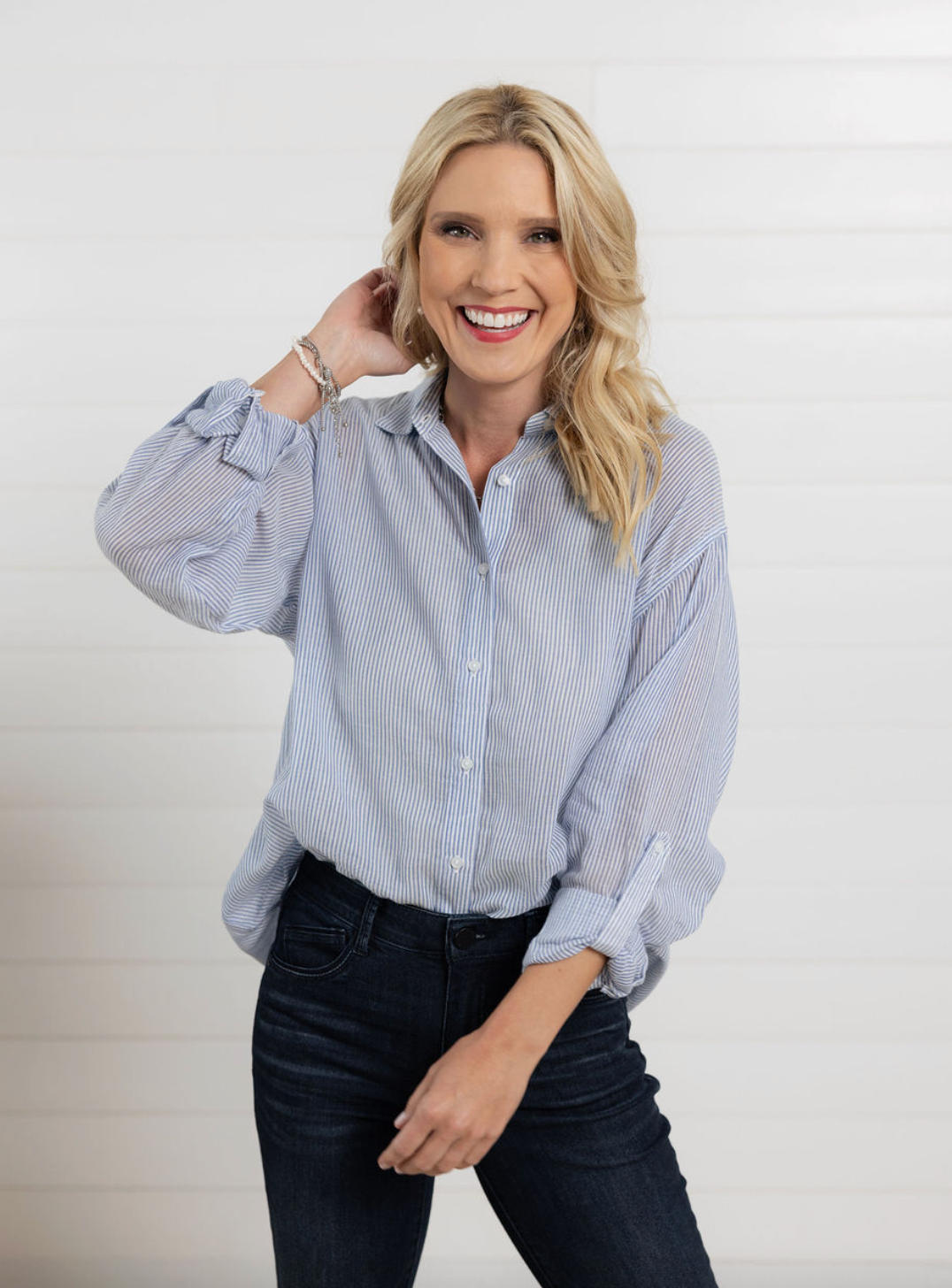 Puff Sleeve Denim Button-Front Top