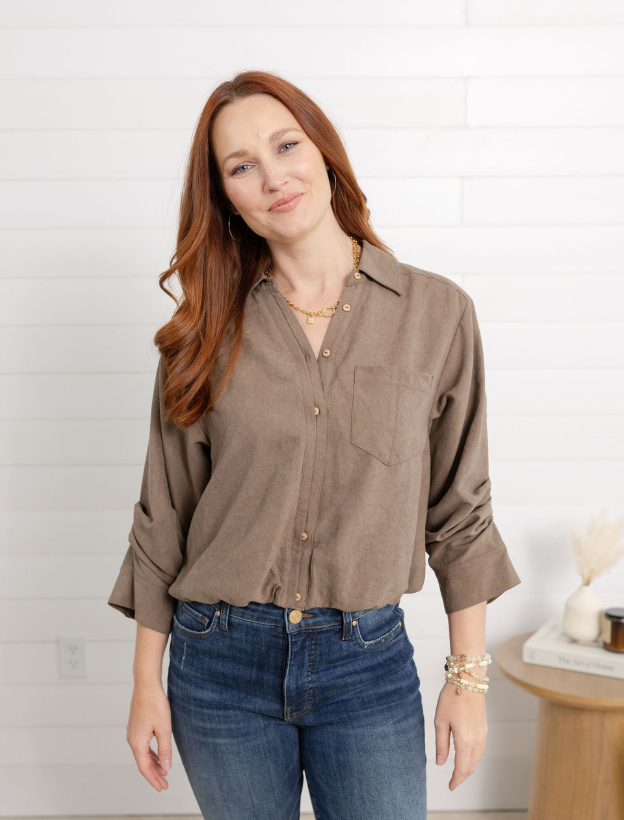 Neutral Taupe Color: Pairs well with denim, white, or patterned bottoms.