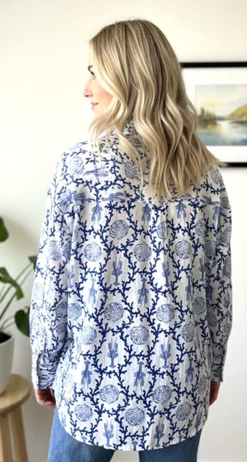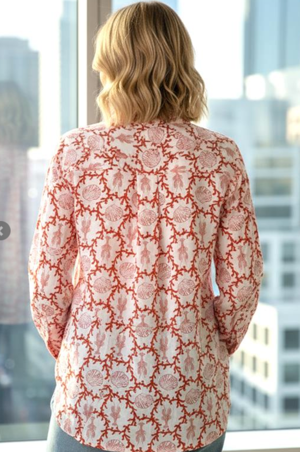 Coral Reef Print Button-Down Blouse