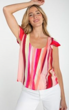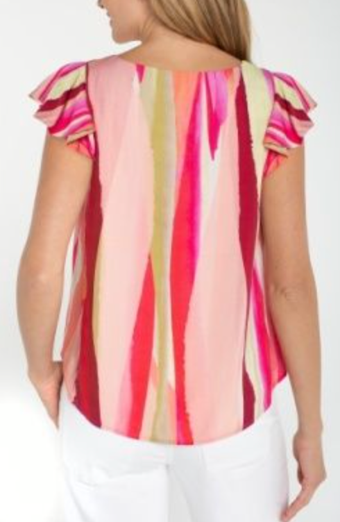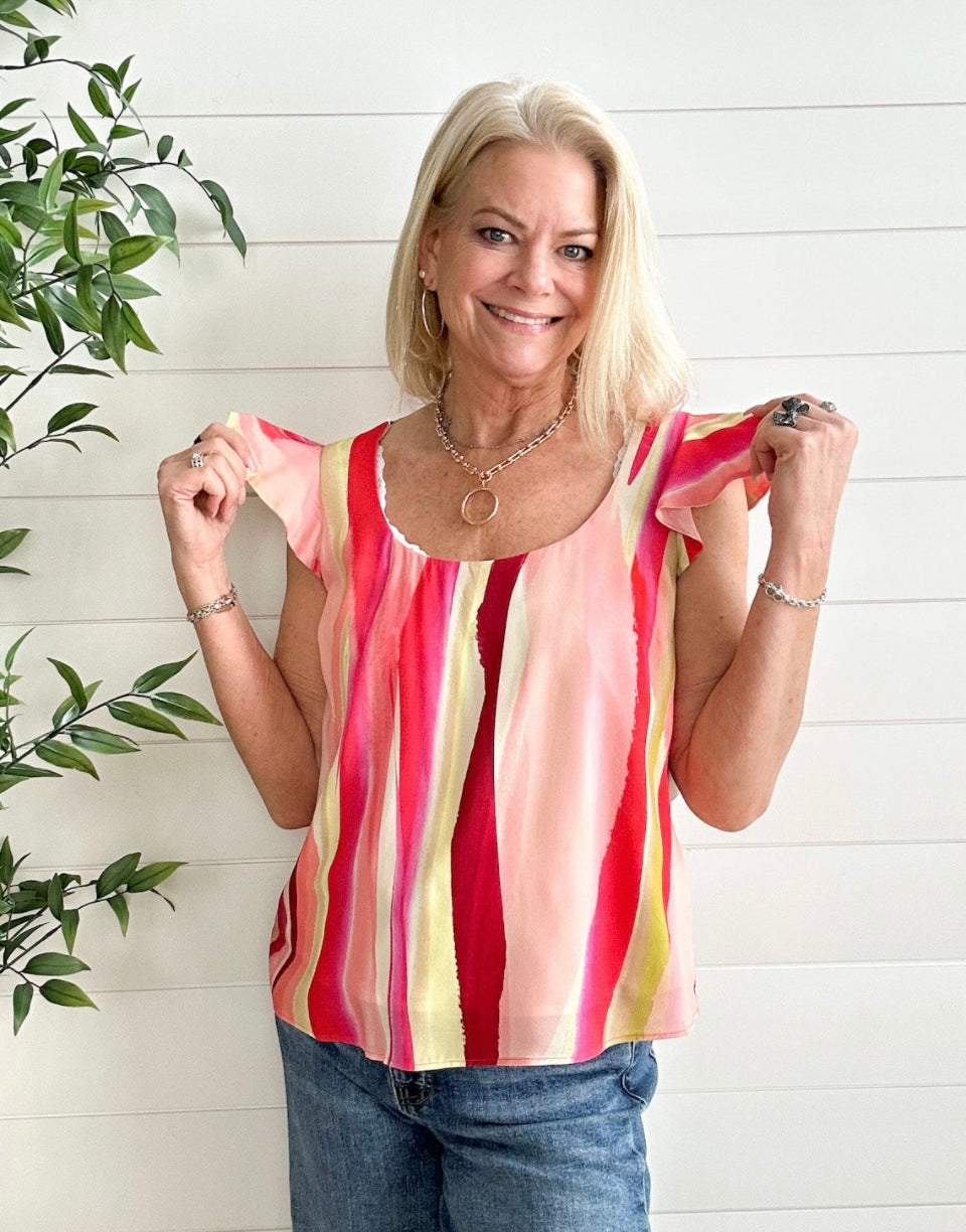 Flutter Sleeve Scoop Neck Woven Top