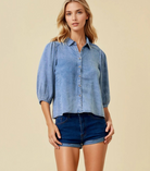 Puff Sleeve Denim Button-Front Top