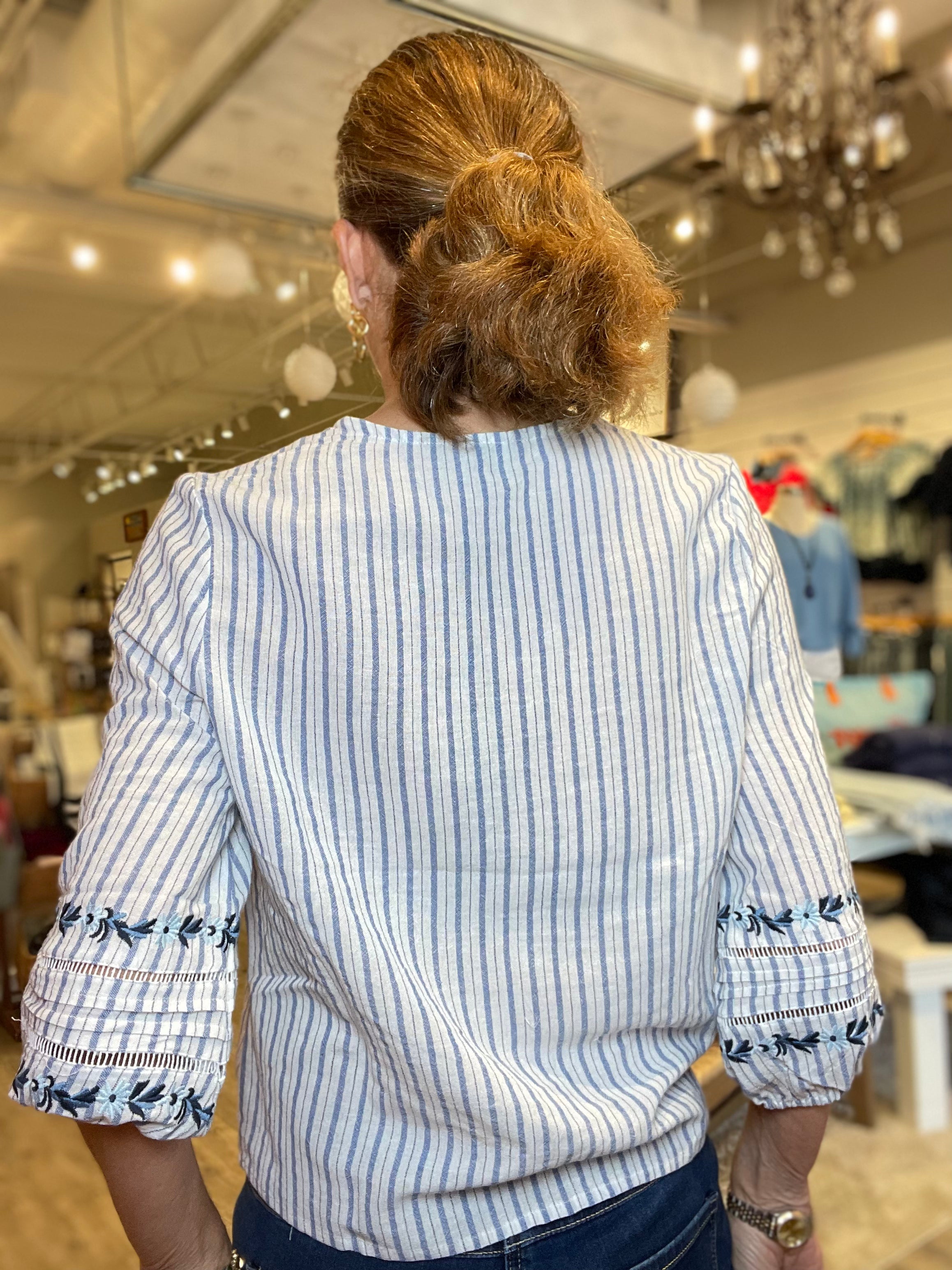 Lightweight woven blouse with classic vertical stripe pattern