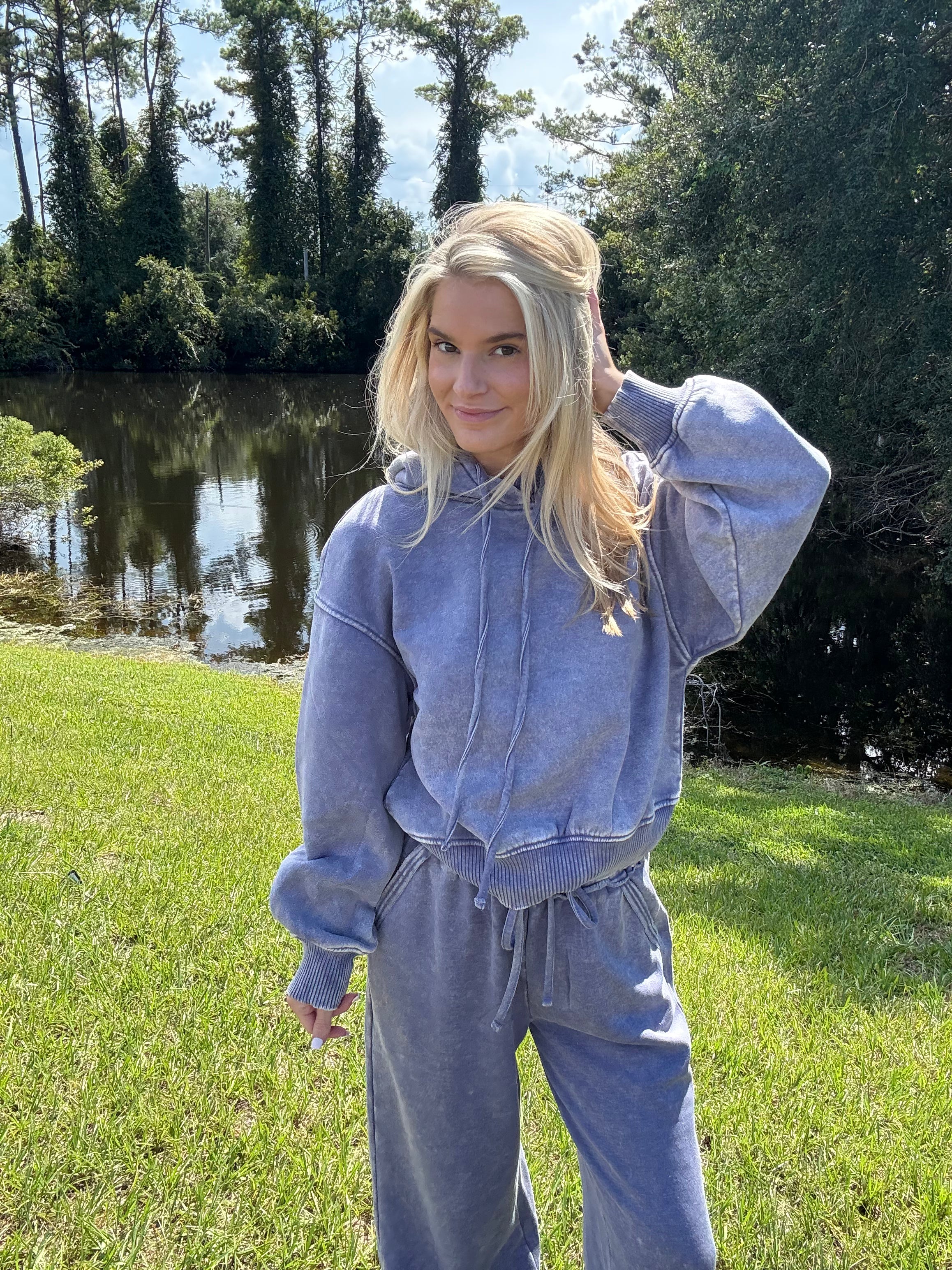 Cozy hoodie in a soft washed marlin blue shade