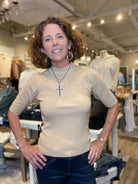 Timeless Style: Sleek mock-neck design with short sleeves for a modern, polished look.