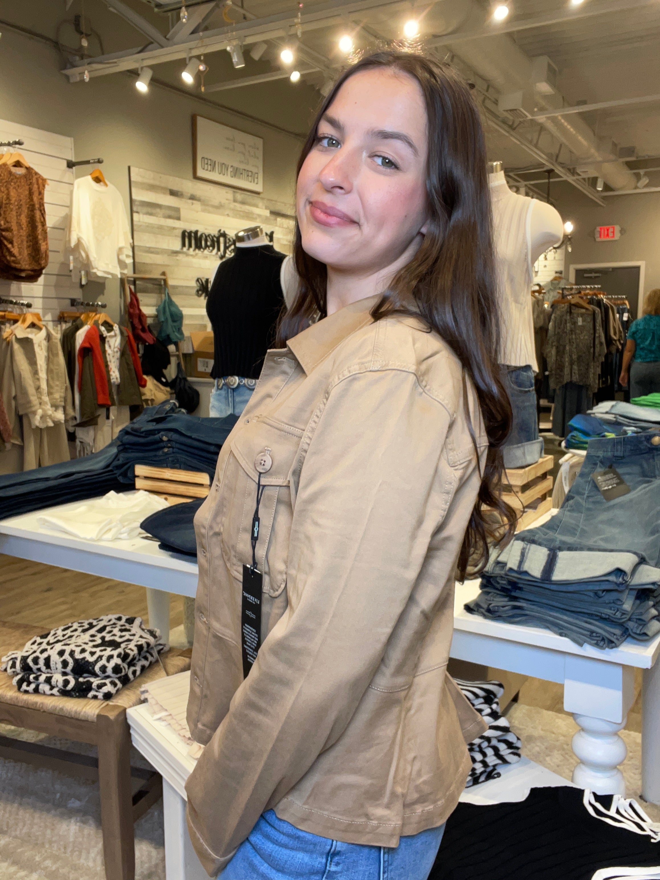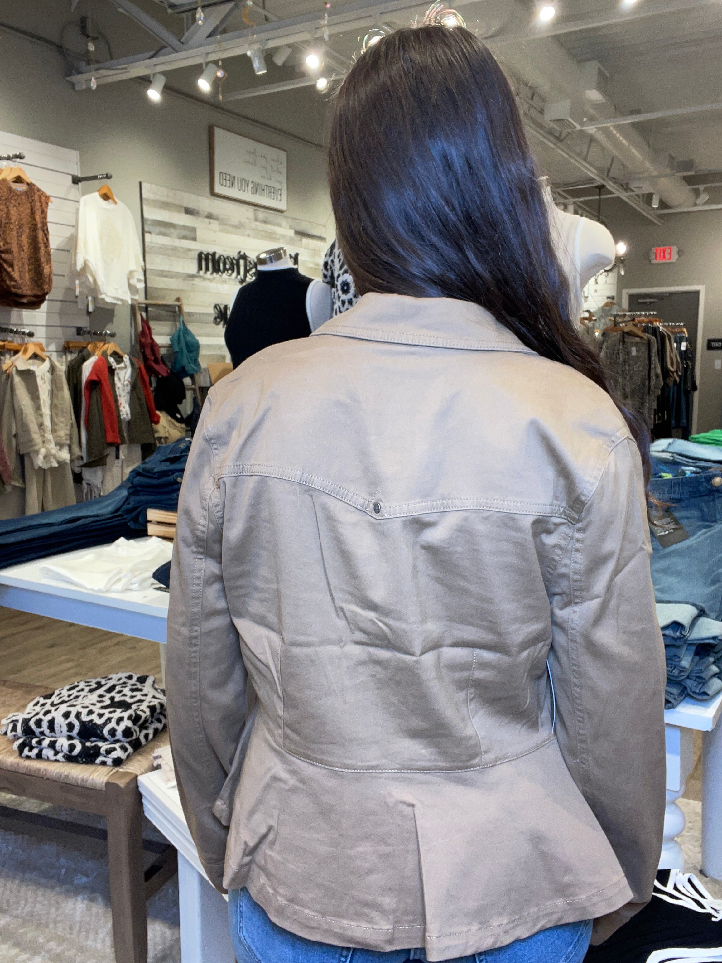 Update your wardrobe with this fabulous Peplum Jacket. This beautifully hued jacket is made with our premium soft stretch twill fabric. A touch of flirtiness mixed with edge gives you styling versatility!