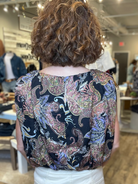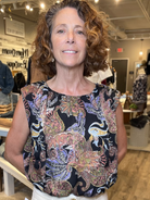 Bring effortless elegance to your wardrobe with our Paisley Print Sleeveless Blouse, available in two timeless colorways: bold black multi and soft neutral blush. Designed with a relaxed fit and gathered hemline, this blouse offers a chic yet comfortable silhouette. The lightweight fabric drapes beautifully, making it perfect for both workdays and weekends.