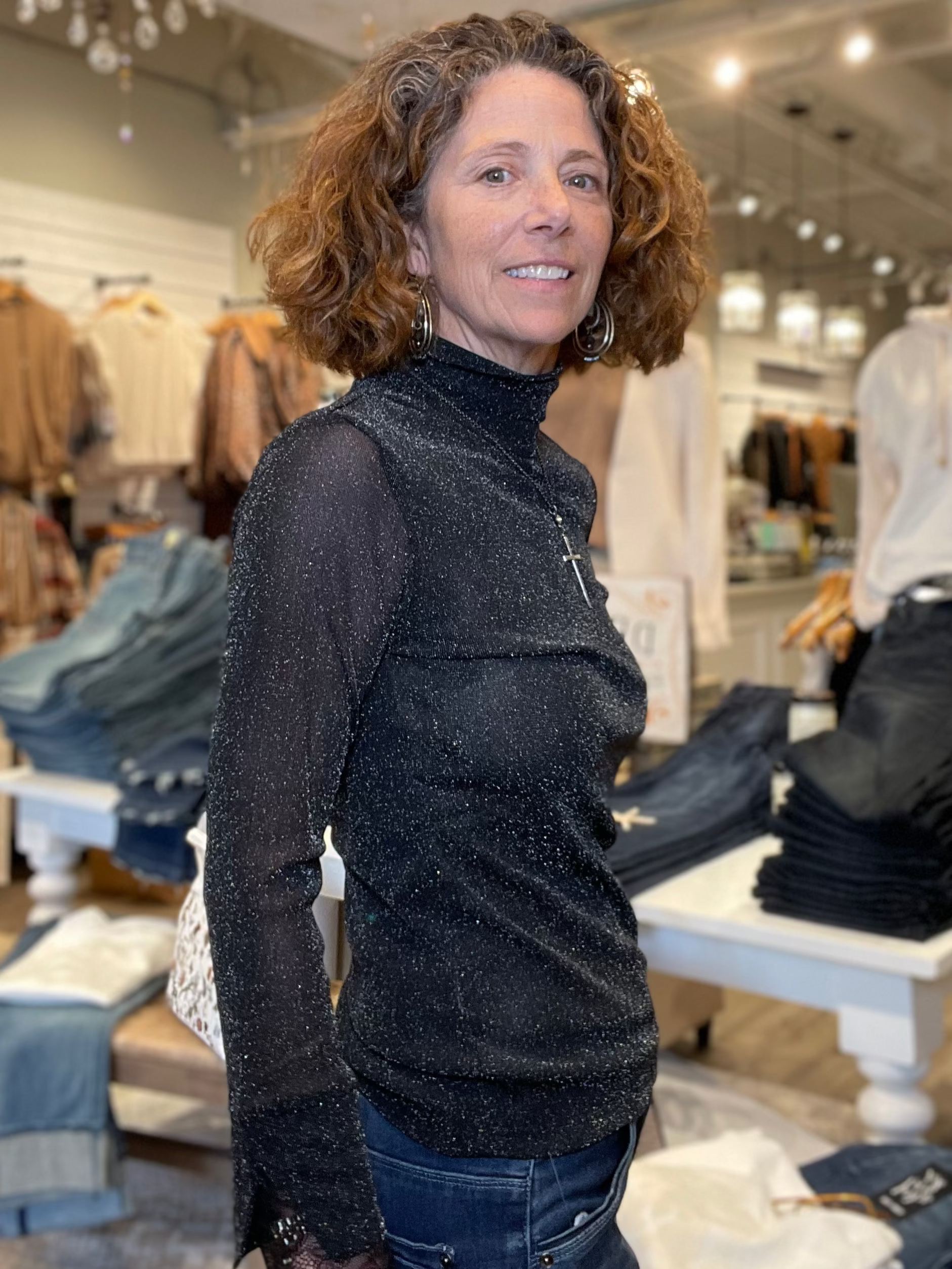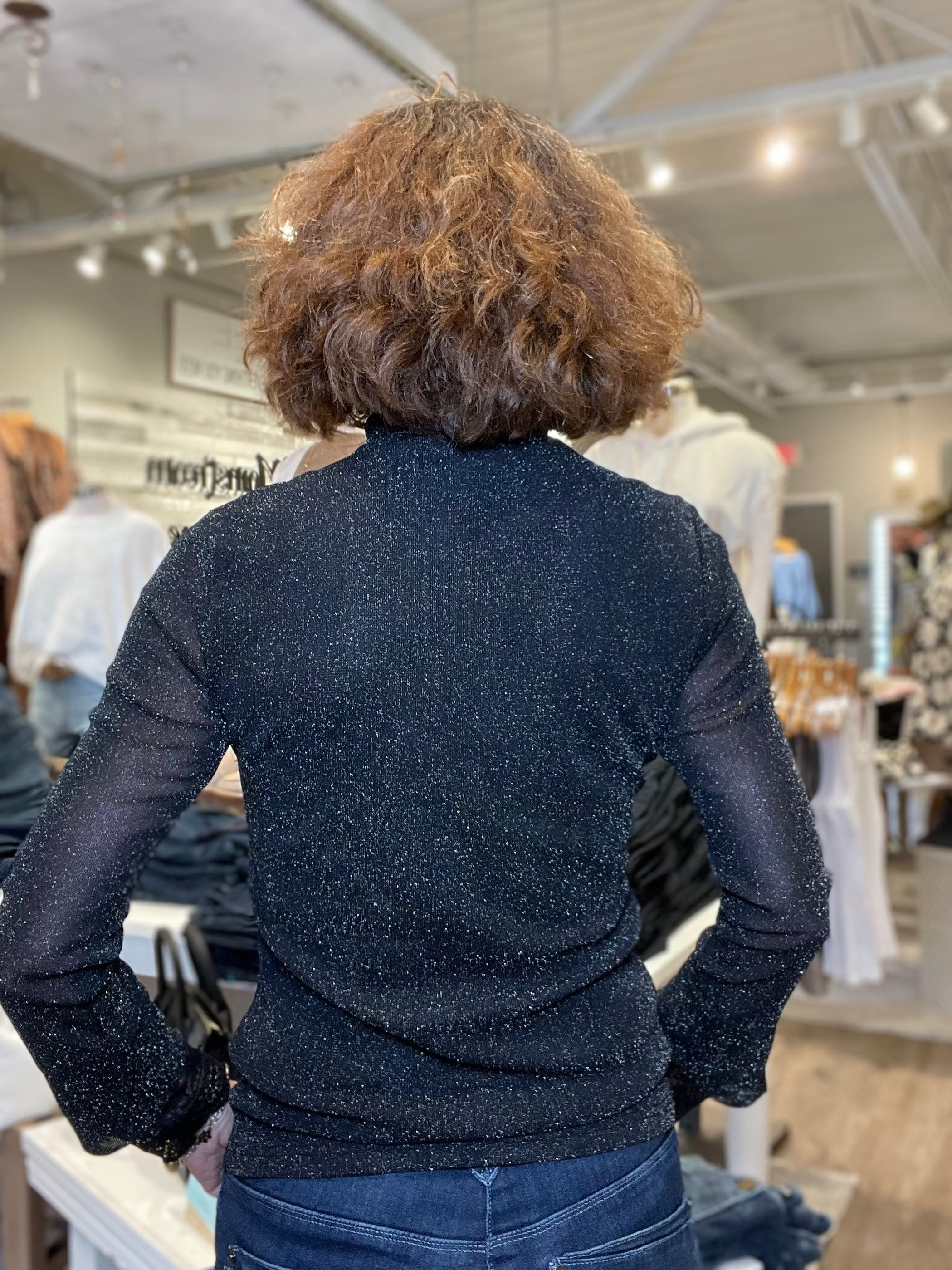 Shimmer Mock-Neck Top with Sheer Sleeves