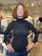 Sophisticated Shine: Black shimmer knit with a subtle sparkle finish for a touch of glam.