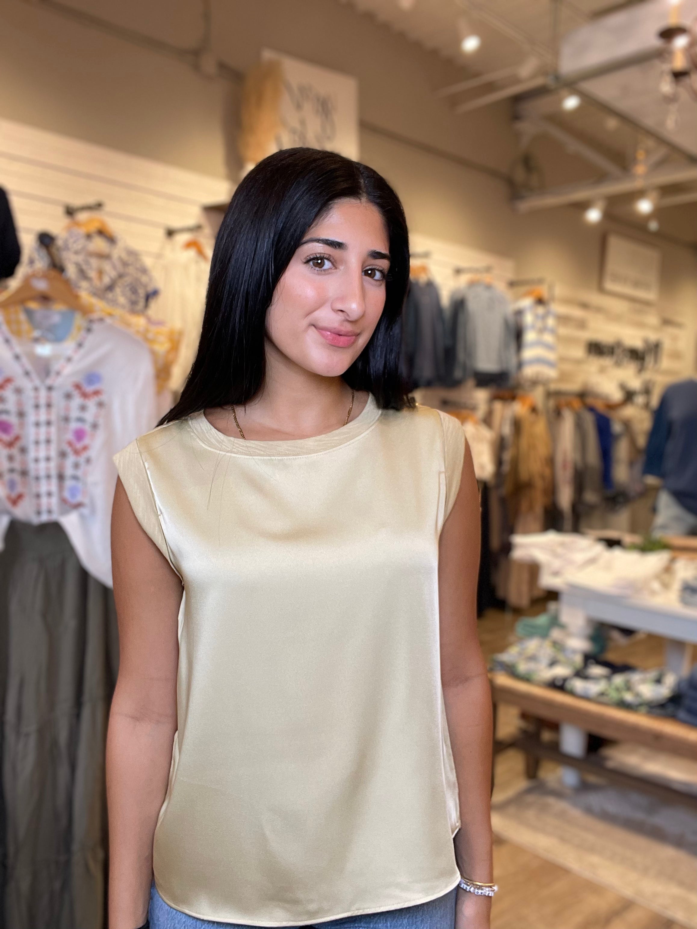 Sleeveless Knit Satin Sleeveless Top